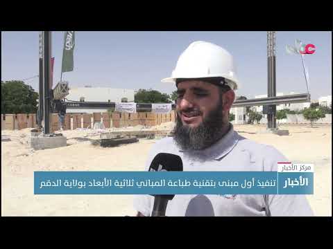 https://www.youtube.com/watch?v=-528utYbBkA تنفيذ أول مبنى بتقنية طباعة المباني ثلاثية الأبعاد بولاية الدقم تقرير: سالم بن هلال الشعيلي #مركز_الأخبار