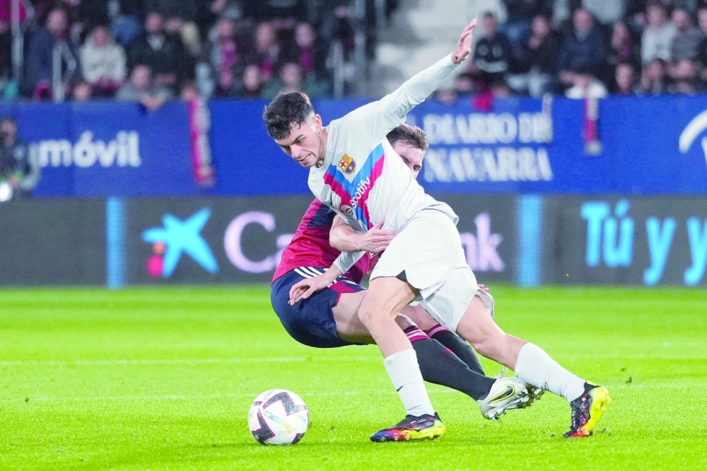 بامبلونا (إسبانيا)«أ.ف.ب»: خطف نادي برشلونة ثلاث نقاط مهمة في تعزيز صدارته عندما حقق فوزاً صعباً بعشرة لاعبين على مضيفه أوساسونا 2-1 بعد طرد البولندي روبرت ليفاندوفسكي في الشوط الأول، ضمن منافسات المرحلة الرابعة عشرة من الدوري الإسباني لكرة القدم.