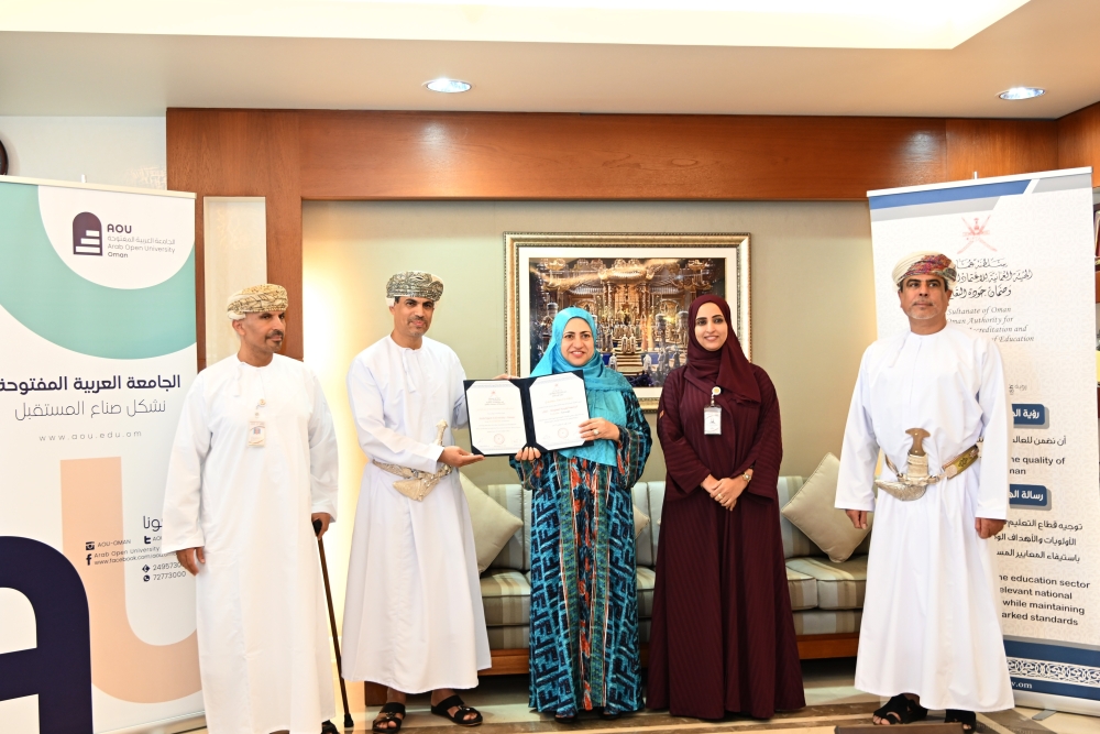 سلمت معالي الدكتورة رحمة بنت إبراهيم المحروقية وزيرة التعليم العالي والبحث العلمي والابتكار ورئيسة مجلس إدارة الهيئة العمانية للاعتماد الأكاديمي وضمان جودة التعليم، اليوم شهادة الاعتماد المؤسسي للجامعة العربية المفتوحة، بحضور سعادة الدكتورة جوخة بنت عبد الله الشكيلية الرئيسة التنفيذية للهيئة، وتسلم الشهادة من جانب الجامعة الأستاذ الدكتور محمد بن حمدان البادي، رئيس الجامعة العربية المفتوحة بسلطنة عُمان، وبحضور الدكتور عبدالعزيز بن محمد الهنائي، عضو مجلس الأمناء بالجامعة.
