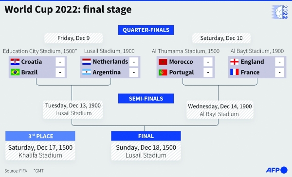 DOHA: The quarterfinal showdowns of Fifa World Cup Qatar 2022 begin with an explosive match between 2018 runners-up Croatia taking on record champions Brazil on Friday.