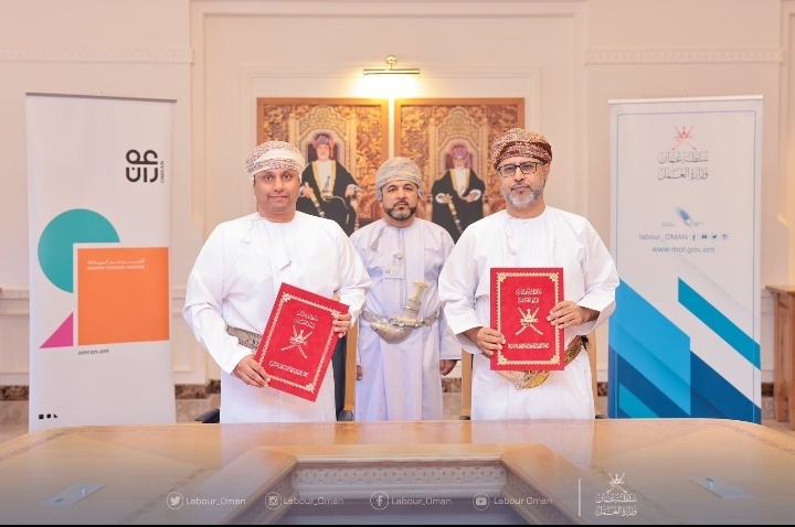 وقع من جانب الوزارة سعادة السيد وكيل العمل لتنمية الموارد البشرية ومن جانب (مجموعة عمران)الفاضل هاشل المحروقي الرئيس التنفيذي للمجموعة.