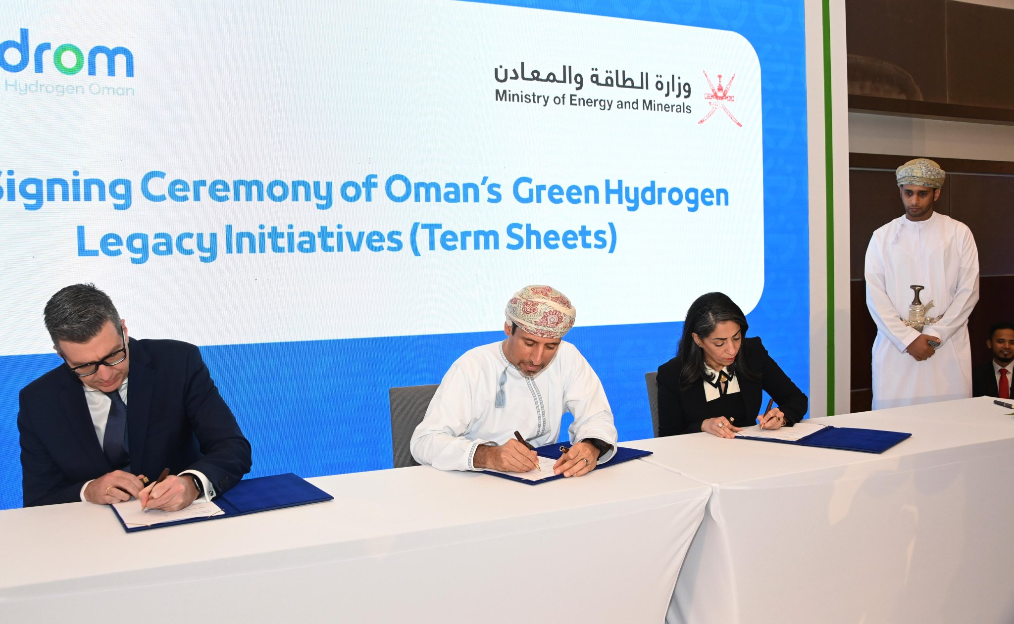 وقعت شركة هيدروجين عُمان على 6 اتفاقيات الشروط التجارية الملزمة للاستثمار في إنتاج الهيدروجين الأخضر بسلطنة عُمان” مع مستثمرين مطوِّرين من عدة دول حول العالم، باستثمارات إجمالية تتجاوز 20 مليار دولار أمريكي خلال السنوات السبع المقبلة.