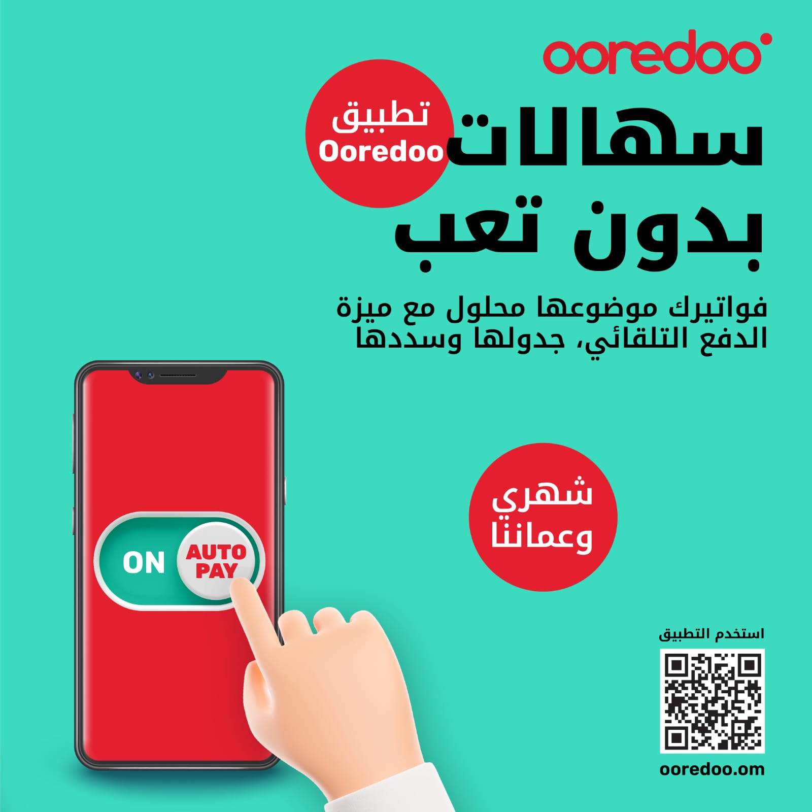 بهدف تزويد عملائها بخدمة مريحة وسهلة وسريعة لدفع الفواتير الشهرية لهواتفهم، أطلقت Ooredoo خدمة ’الدفع التلقائي‘ لتكون ضمن أحدث المزايا التي أضافتها مؤخراً إلى تطبيقها الرقمي. فمن خلال قيام عملاء شهري بجدولة تسديد فواتيرهم الشهرية تلقائياً عند استحقاقها أصبح بإمكانهم الاستمرار في الاستمتاع بالتواصل والتصفح والعمل دون عناء ودون الحاجة لتذكر تاريخ استحقاق فاتورتهم كل شهر.