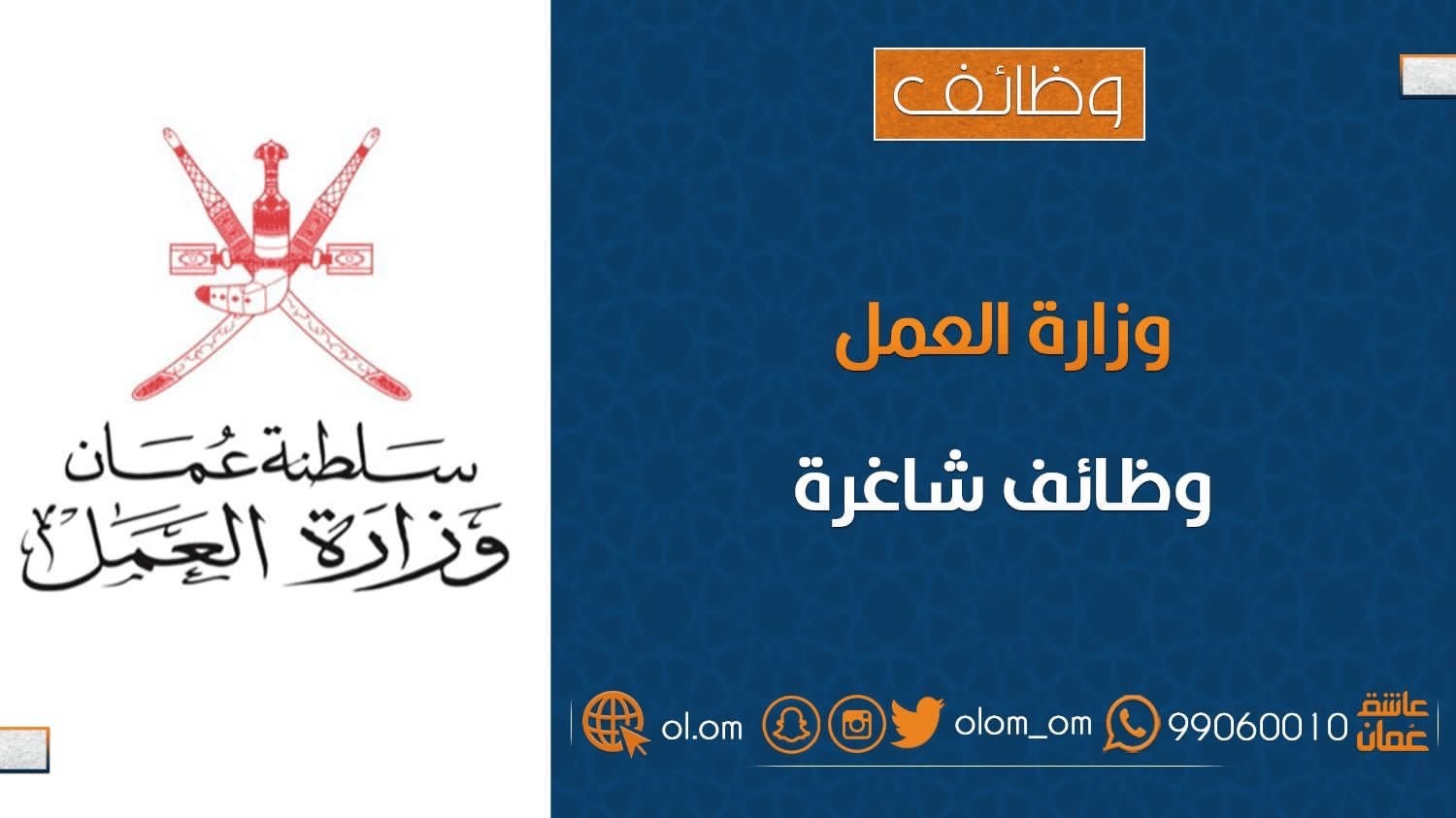 أعلنت وزارة العمل ممثلة بالمديرية العامة للعمل في محافظة شمال الباطنة عن توفر فرص عمل وظيفية في مؤسسات القطاع الخاص العاملة بالمحافظة لمختلف التخصصات والمؤهلات