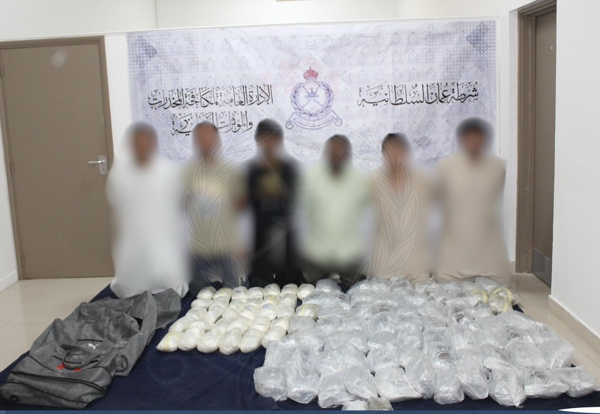 ألقت الإدارة العامة لمكافحة المخدرات والمؤثرات العقلية القبض على ستة أشخاص من جنسيتين آسيويتين في ولاية مطرح لحيازتهم أكثر من اثنين وثلاثين كيلو جرامًا من مخدر الكريستال وثلاثة وعشرين كيلو جرامًا من مخدر المارجوانا، وتستكمل الإجراءات القانونية بحقهم.
