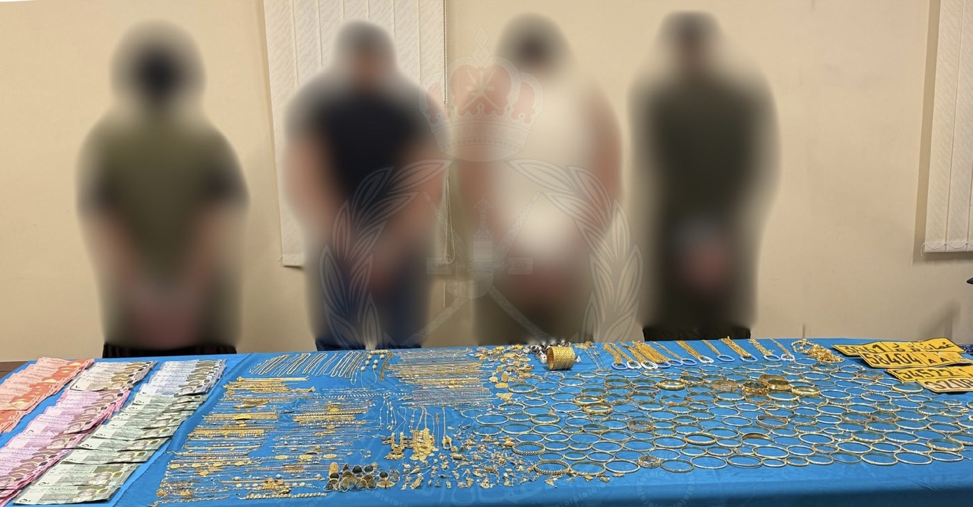 تمكّنت شرطة عُمان السلطانية، ممثلةً في قيادتي شرطة محافظة مسقط وشمال الباطنة وبالتعاون مع الإدارة العامة للتحريات والبحث الجنائي، من ضبط أربعة أشخاص ملثمين من جنسية آسيوية بتهمة السرقة بالإكراه بعد اقتحامهم أحد محال بيع الذهب بولاية السيب وقيامهم بالتهديد والاعتداء على العاملين به وسرقة مصوغات ذهبية تقدر قيمتها بـ 150 ألف ريال عماني ومبالغ مالية، فيما استُعيدت جميع المسروقات، وتستكمل الإجراءات القانونية بحقهم.