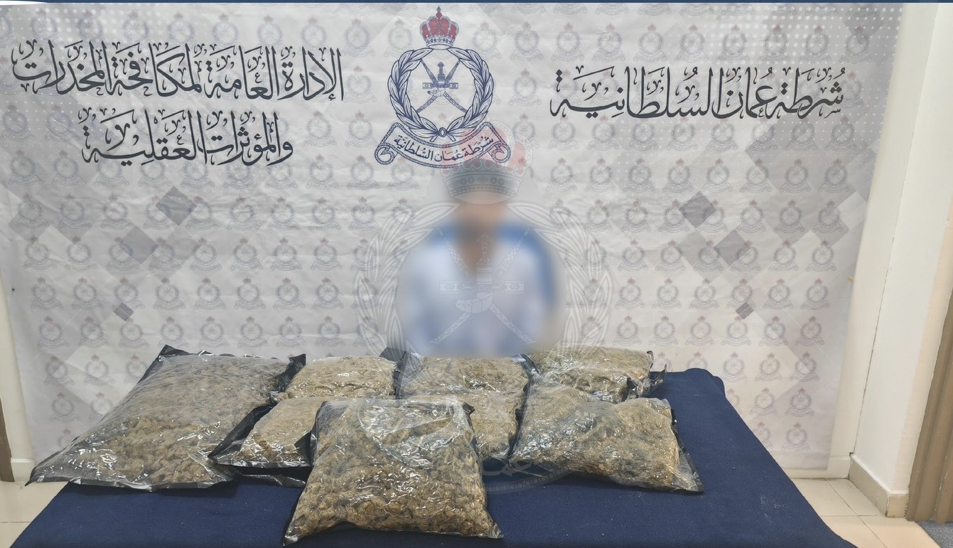 تمكنت إدارة جمارك مطار مسقط الدولي، بالتعاون مع الإدارة العامة لمكافحة المخدرات والمؤثرات العقلية، من ضبط شخص من جنسية آسيوية بحوزته أكثر من 8 كيلوجرامات من مخدر الماريجوانا، بعد محاولة تهريبه بإخفائه داخل أكياس مواد غذائية. وتستكمل الإجراءات القانونية بحقه.