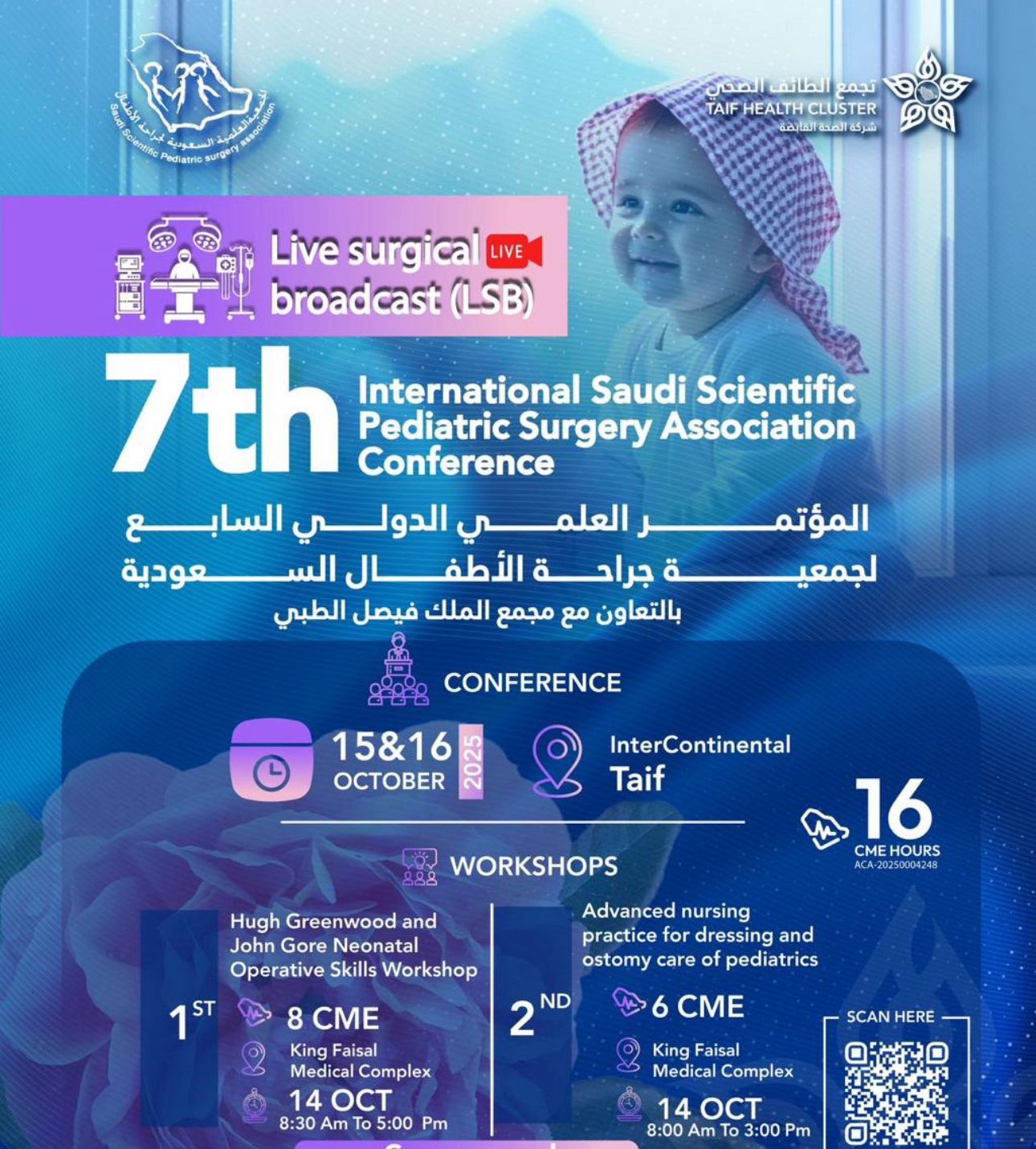 وتُعقد الورشة في مجمع الملك فيصل الطبي بمدينة الطائف، من الساعة الثامنة صباحًا وحتى الخامسة مساءً، بمشاركة نخبة من الاستشاريين والخبراء المحليين والدوليين في مجال جراحة الأطفال، وبحضور عدد من المهتمين والمختصين في هذا المجال.
