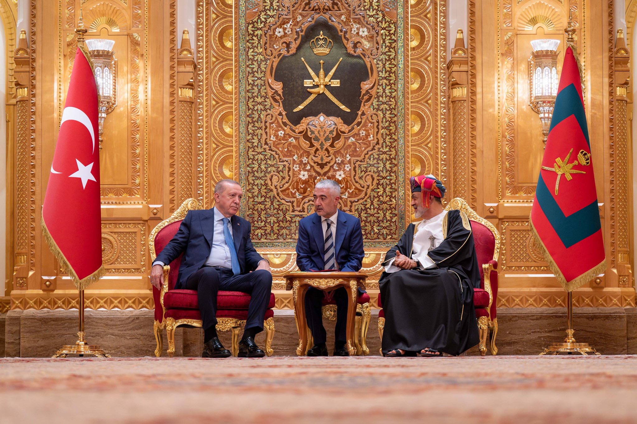 جلالة السُّلطان المعظّم /حفظه الله ورعاه/ وفخامة رئيس جمهورية تركيا يستعرضان خلال لقاءٍ خاصّ بقصر العلم العامر عددًا من الموضوعات السياسية والدبلوماسية والاقتصادية، وسبل توثيق روابط التعاون والشراكة، عبر فتح مسارات جديدة للاستثمار المشترك في البلدين الصديقين.