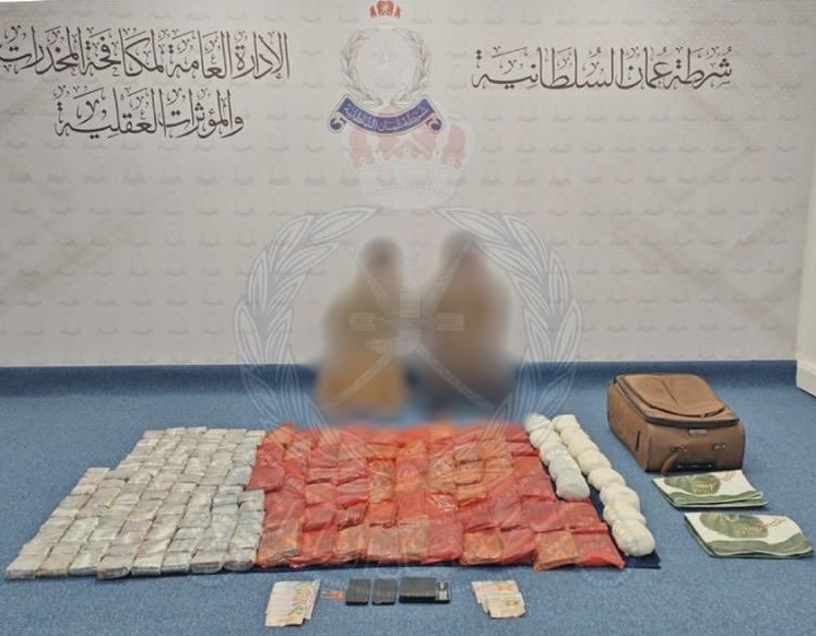 الإدارة العامة لمكافحة المخدرات والمؤثرات العقلية ضبطت شخصين من جنسية آسيوية وبحوزتهم كميات من مخدر الكريستال والحشيش والمؤثرات العقلية في ولاية السيب بقصد الاتجار بها وتعاطيها، عليه تم اتخاذ كافة الإجراءات القانونية بحقهما.
