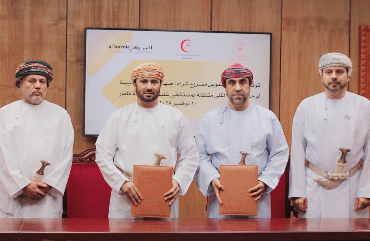 وقع مكتب والي شليم وجزر الحلانيات مع شركة البركة للخدمات النفطية اتفاقية تمويل مشروع شراء أجهزة ومعدات طبية لوحدة غسيل الكلى المتنقلة بمستشفى شليم بمحافظة ظفار.