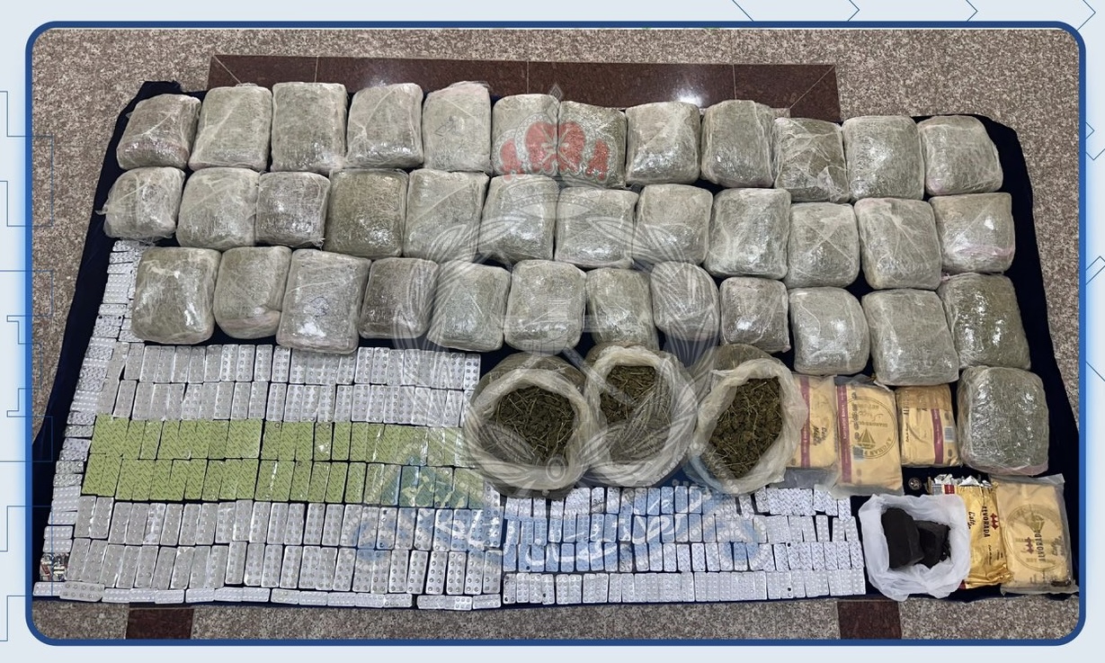 ضبطت إدارة مكافحة المخدرات والمؤثرات العقلية بقيادة شرطة محافظة مسندم أربعة أشخاص من جنسيتين آسيويتين بولاية بخاء لدخولهم البلاد بطريقة غير مشروعة وحيازتهم كميات كبيرة من مخدر الماريجوانا والحشيش والأفيون والمؤثرات العقلية بقصد الاتجار بها وتعاطيها، وتُستكمل الإجراءات القانونية بحقهم.