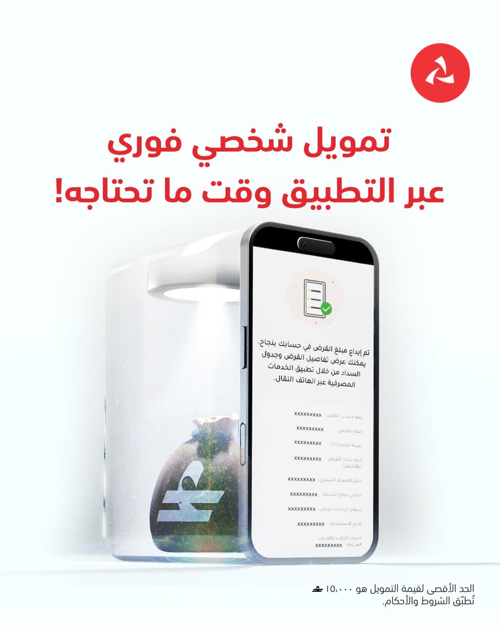 وانطلاقًا من هذا النهج، أعلن البنك عن إطلاق خدمة التمويل الفوري الكترونياً عبر تطبيق الهاتف النقّال، في خطوة نوعية تعكس التزام البنك بالتميّز الرقمي والابتكار المستدام. وتتيح الخدمة الجديدة للزبائن المؤهلين التقدّم بطلب الحصول على تمويل شخصي واستلام المبلغ خلال دقائق معدودة، دون الحاجة إلى زيارة الفروع أو استكمال أي إجراءات ورقية، حيث يتم إيداع مبلغ التمويل مباشرة في حساب الراتب بمجرد إتمام الطلب والتحقق منه عبر رمز التحقق (OTP)، وذلك من خلال خطوات بسيطة وسلسة عبر التطبيق.