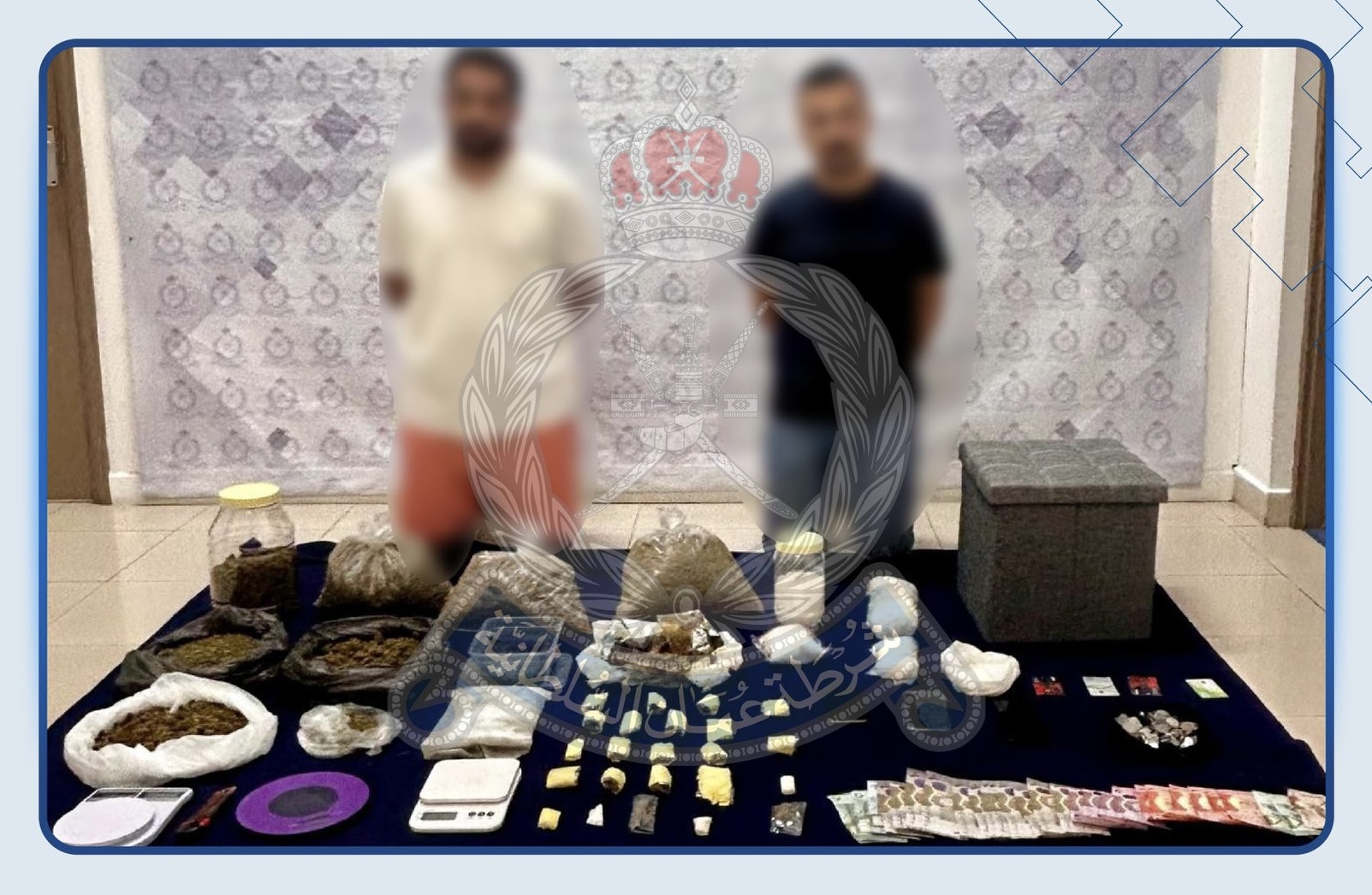 بعد إخفائهما لمواد مخدرة في 15 موقعًا بأحياء سكنية مختلفة في ولايتي السيب وبوشر، ألقت الإدارة العامة لمكافحة المخدرات والمؤثرات العقلية القبض على شخصين من جنسية عربية وبحوزتهما كمية من مخدر الكريستال والماريجوانا والحشيش بقصد الاتجار والتعاطي، وتُستكمل الإجراءات القانونية بحقهما.