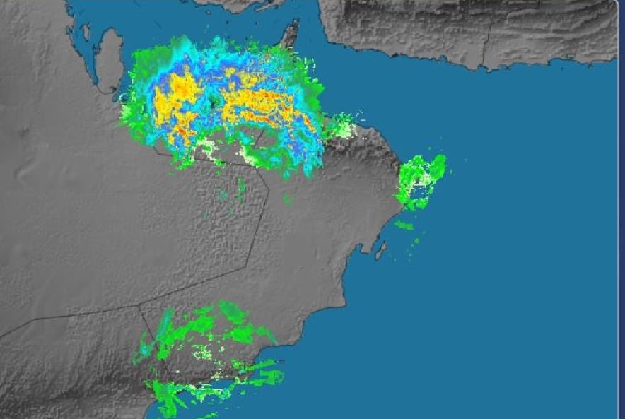 أفادت الأرصاد العُمانية باستمرار هطول أمطار رعدية متفاوتة الغزارة على محافظات الظاهرة والبريمي وشمال الباطنة وأجزاء من محافظة ظفار، قد تؤدي إلى جريان الأودية والشعاب، وتمتد لتشمل خلال الفترة القادمة أجزاء من محافظتي جنوب الباطنة ومسندم.