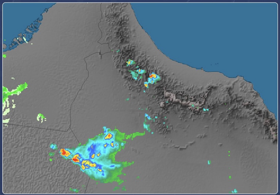 أوضحت صور الرادار نشاطًا للخلايا الرعدية وهطول أمطار متفاوتة الغزارة على محافظتي الظاهرة وأجزاء من الوسطى، ومن المتوقع خلال الساعات القادمة أن تمتد لتشمل أجزاءً من محافظتي الداخلية وشمال الباطنة.