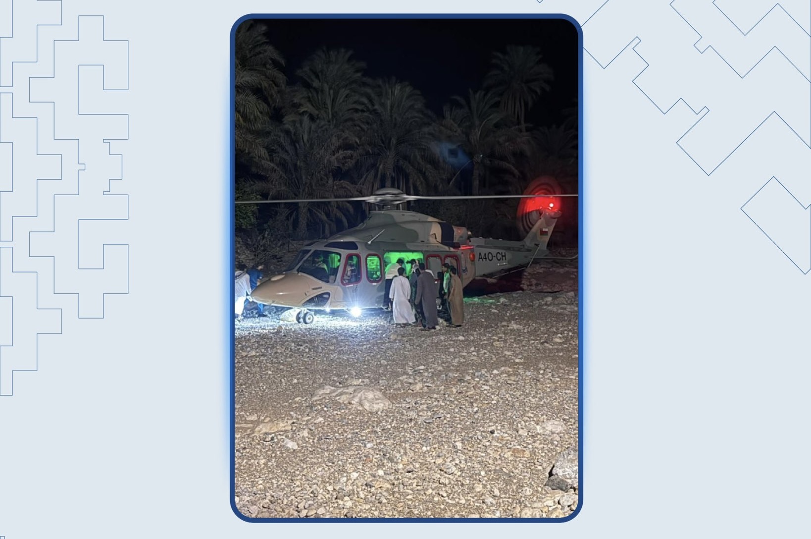 نفذ طيران الشرطة عملية إسعاف جوي لمواطنة من منطقة سوقة بولاية قريات إلى مستشفى خولة لتلقي الرعاية الطبية اللازمة.