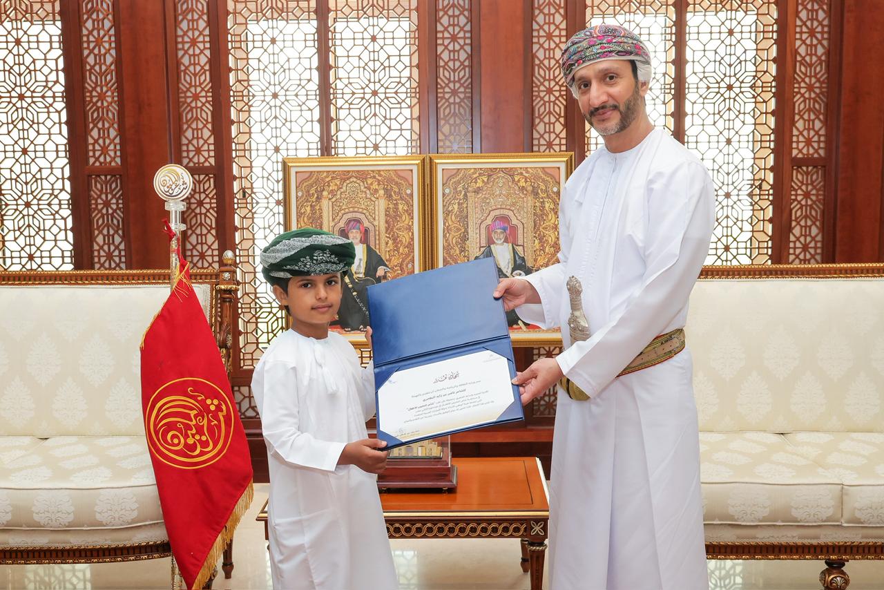 كرم معالي السيد سعود بن هلال البوسعيدي وزير الثقافة و الرياضة والشباب الشاعر الناشئ /ناصر بن زايد البطحري الفائز بلقب شاعر المليون للاطفال ضمن مسابقة شاعر المليون التي أُقيمت بدولة الامارات العربية المتحدة الشقيقة في فبراير الماضي.