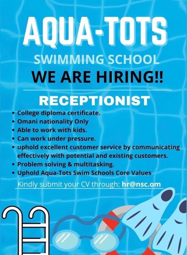 ١. موظف استقبال.٢. معلم سباحة.