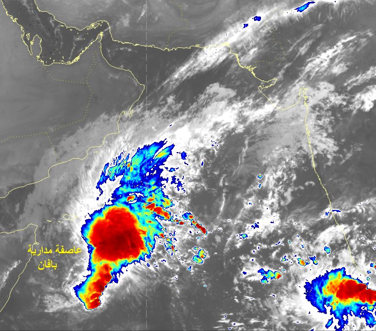 تطور وتعمق المنخفض المداري العميق المتمركز جنوب غرب بحر العرب إلى عاصفة مدارية وأطلق عليها اسم #بافان بسرعه رياح حول المركز تقدر بين(34-40) عقدة ولا تزال تتجه نحو السواحل الصومالية مع تدفق السحب على سواحل #بحر_العرب والتي قد تؤدي إلى هطول الأمطار المتفرقة