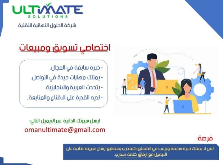 اعلنت شركة الحلول النهائية التقنية عن رغبتها بتعيين لديها “اختصاصي تسويق ومبيعات”