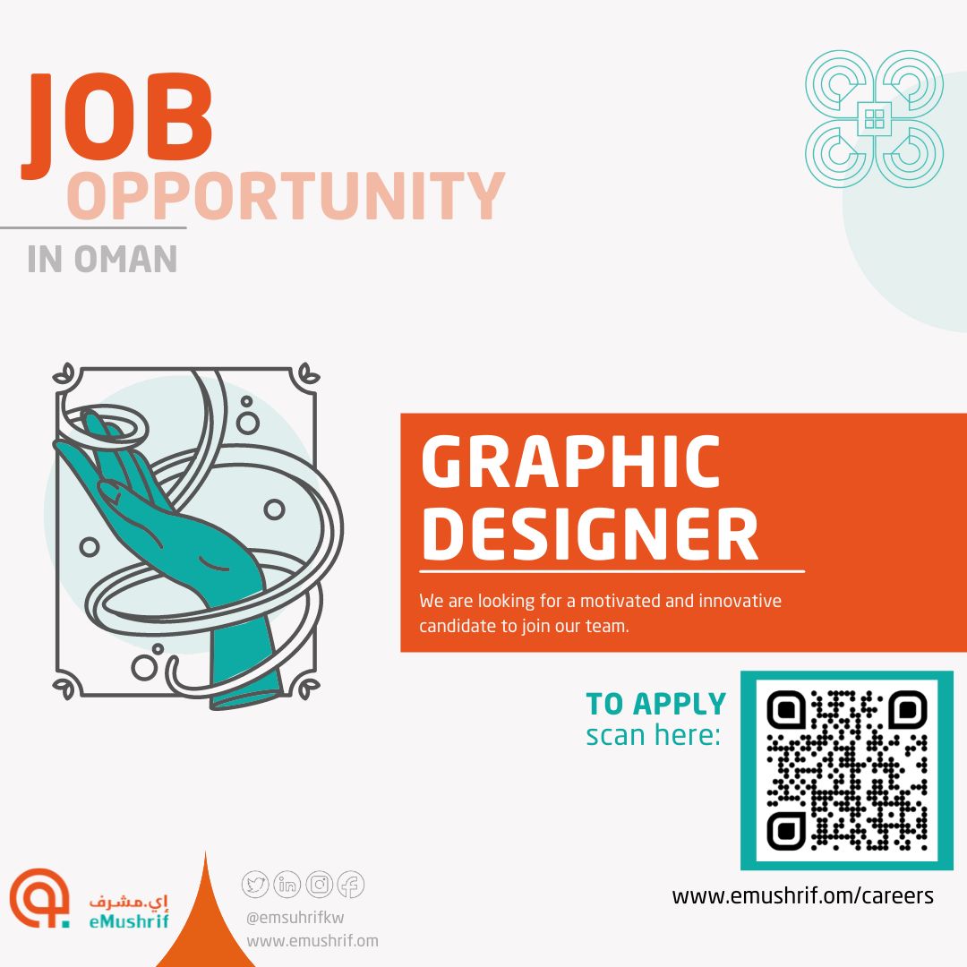 أعلنت شركة إي مشرف عن رغبتها بتعيين لديها مصمم جرافيك. للتقديم اضغط هنا لتصفح المزيد من جديد الوظائف و التدريب بالسلطنة اضغط هنا