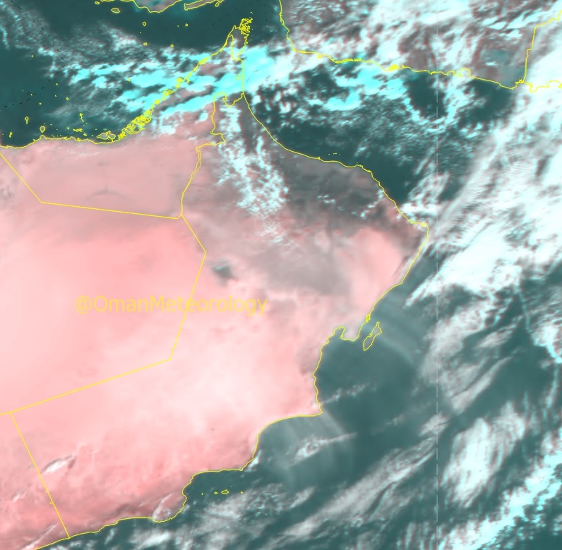 تواجد السحب على أجزاء من محافظة مسندم وسواحل بحر عمان وأجزاء من جبال الحجر مع فرص هطول أمطار متفرقة. بالإضافة الى تصاعد الغبار والأتربة بفعل الرياح الشمالية الغربية النشطة على محافظات الظاهرة وجنوب الشرقية والوسطى وظفار