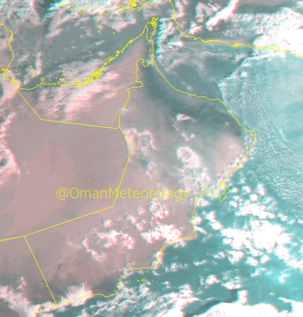 توضح آخر صور الأقمار الإصطناعية والرادار تواجد سحب ممطرة بمحاذاة سواحل محافظة مسندم كما تنتشر السحب المنخفضة على أجزاء من محافظات الظاهرة والداخلية وجنوب الشرقية والوسطى وظفار