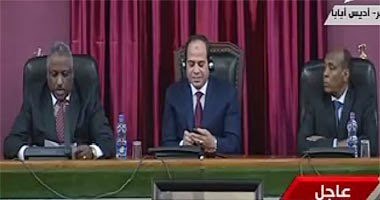البرلمان الإثيوبى، والتى استغرقت نحو ثلث الساعة، ولاقت ترحيبا كبيرا من الحضور. وقبيل إلقاء كلمة الرئيس السيسى، سبقه إلى شرفتى القاعة يميناً ويساراً، الوفدان الرسمى والإعلامى المرافق لرئيس الجمهورية. وزير الرى يلتقط الصور بهاتفه الشخصى وكان أول الذين تواجدوا داخل القاعة، فى الشرفة التى على يسار المنصة الرئيسية، السفير سامح شكرى، وزير الخارجية، والدكتور حسام مغازى وزير الرى، الذى حرص على الوقوف بالشرفة والتقاط صور للقاعة والنواب المتواجدين، من هاتفه الخاص، وحتى أثناء كلمة الرئيس