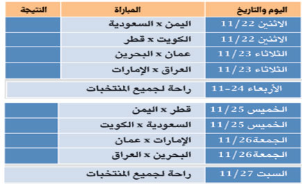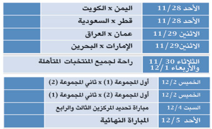 جدول مباريات خليجي 20 في اليمن 2010
