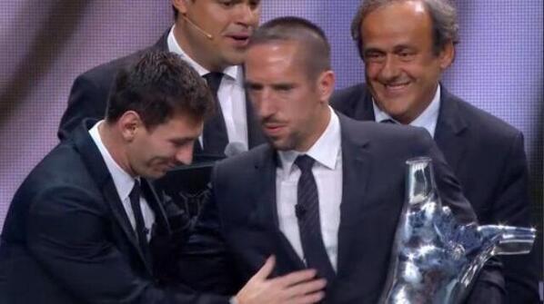 صورة : لــميسي يهنئ ريبيري بفوزه بالجائزة