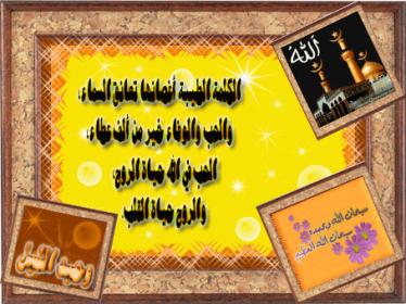 وبالنسبة للعبارة (الكلمة الطيبة ......) لو حاطنها فـ النص فـ الجانب الأيمن ولون الخط حطيته أبيض واستخدمت خط توهاما