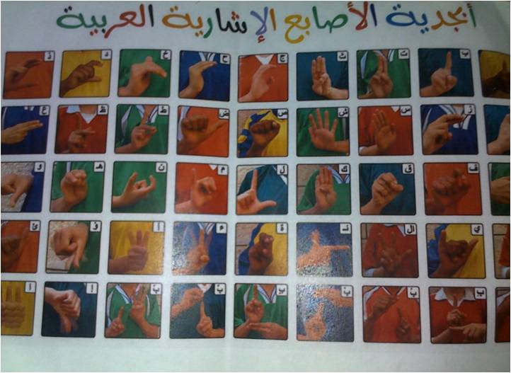 وابتدأ المدرب بتدريب المشاركين في الدورة أبجدية الأصابع الإشارية العربية