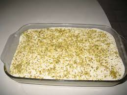 تبرد نفرد القشطه على الوجه وتزين بالفستق الحلبي او اللوز المطحون ويوضع عليها