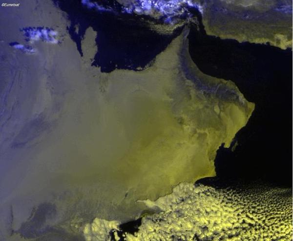 *الصّورة الجوّية الآن توضّح خلايا السّحب غرب بحر العرب وتدفّقها نحو سواحل محافظتي الوسطى وظفـار،،،