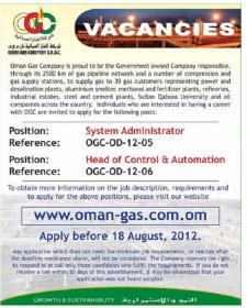 وظائف في شركة الغاز العمانية_اليوم الأثنين 6/8/2012