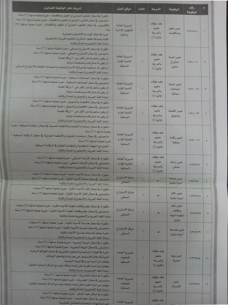الاحد 3 فبراير 2013م - وزارة الزراعه والثروه السمكيه - وظائف كثيرة