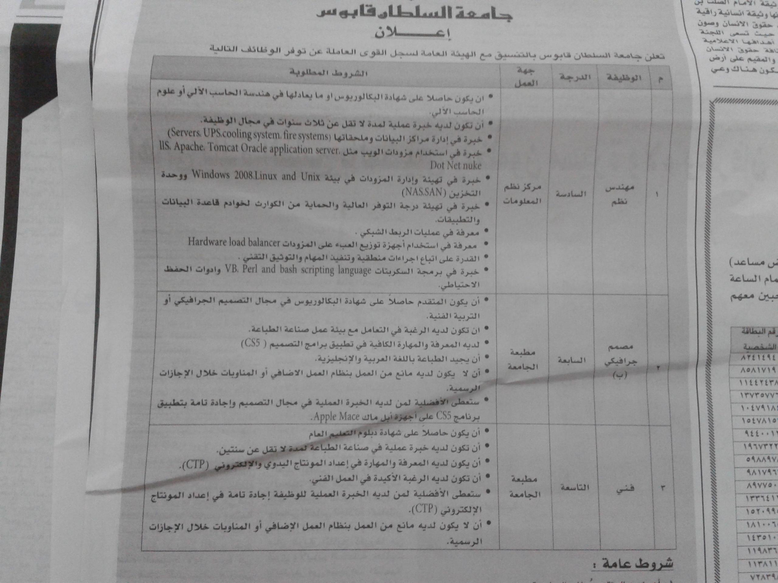 الموضــوع مباشــرة,, هذا إعلان عن وظيفة تصميم جرافيكي للطلاب المتخصصين في هذا المجــال في جريدة عمان 25\12\2012
