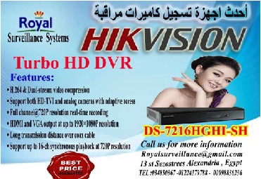 تشرف شركة Royal Surveillance systems المتخصصة في جميع أنظمة الاتصالات و الأنظمة الأمنية ولديها خبراء متخصصون في تلك الأنظمةCommunication & Security & Control Systems بعرض أحدث أجهزة التسجيل DVR والتى حققت المعادلة الصعبة والتى يبحث عنها أى عميل أعلى كفاءة بأقل سعر والتى تستخدم فىتجميع ستة عشر كاميرا و تسجيل البيانات الواردة منها